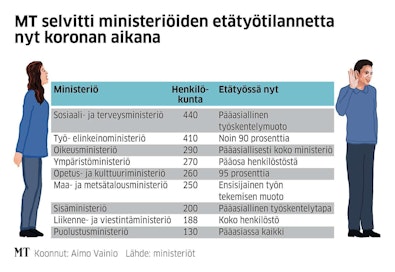MT selvitti: Ministeriöissä lähes kaikki ovat etätöissä – ja niin tulee jatkumaan koronan jälkeenkin