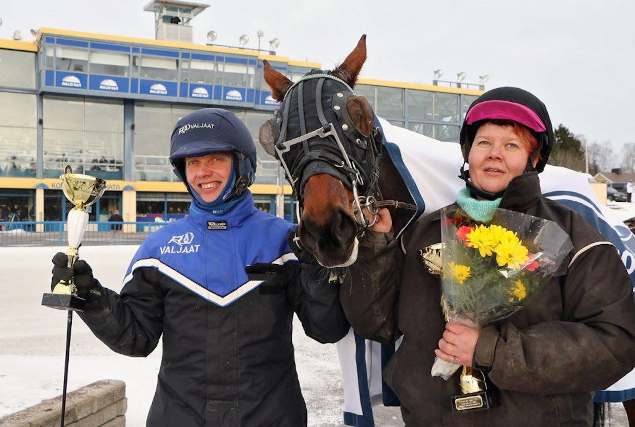 Meneväisenä keulassa painellut Herman Halm piti ykköspaikkansa maaliin asti. Emma Väre omistaa ruunan yhdessä veljensä Villen ja vanhempiensa Micaelan ja Riston kanssa.