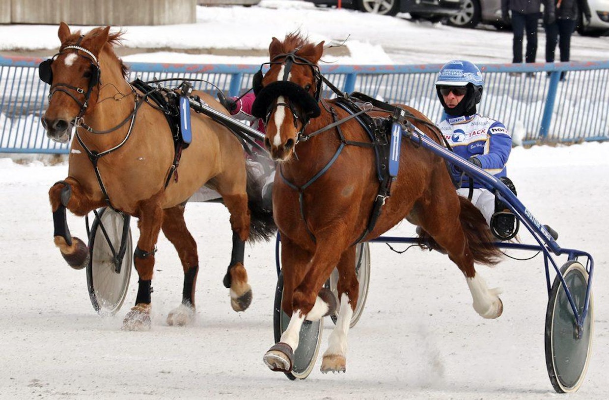 Ville Tonttilan ajokki lähti 40 metrin takamatkalta, matkasi parijonon perällä toisella radalla ja teki pitkän kirin kolmatta rataa kiertämällä.