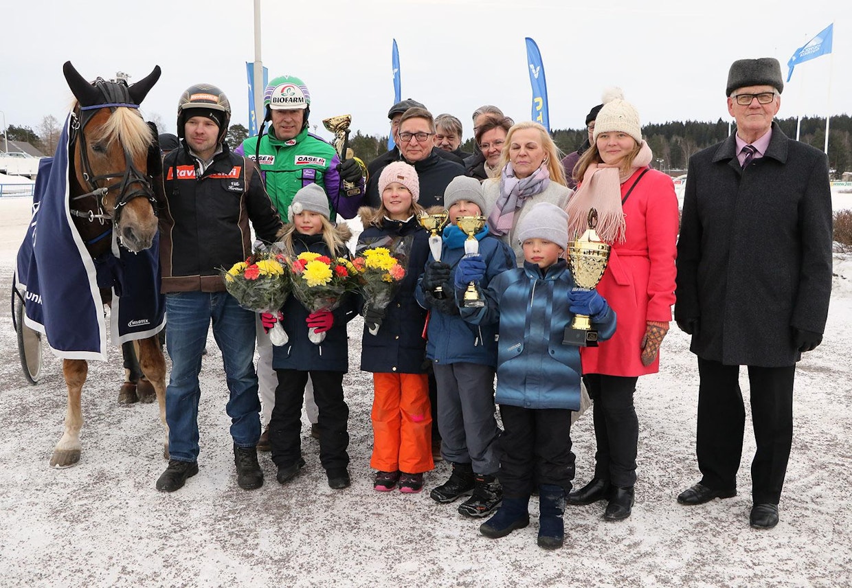 Costellon voittajaseremonioihin pääsivät mukaan myös omistajien Hanna ja Tommi Herttuan naapurit Helmi ja Elmeri Wahlfors.