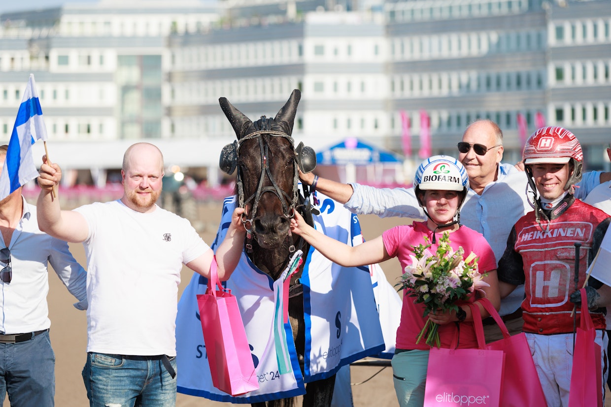 Miika ja Anna-Kaisa Tenhunen juhlimassa Santtu Raitalan kanssa voittoa toissa vuoden Elitloppet-lauantaina. Kuva: Terhi Piispa-HelistenNeed’emin uran voittosumma on lähes 150 000 euroa. Ruotsissa syntynyt Need’em on voittanut urallaan tähän mennessä 17 lähtöä.