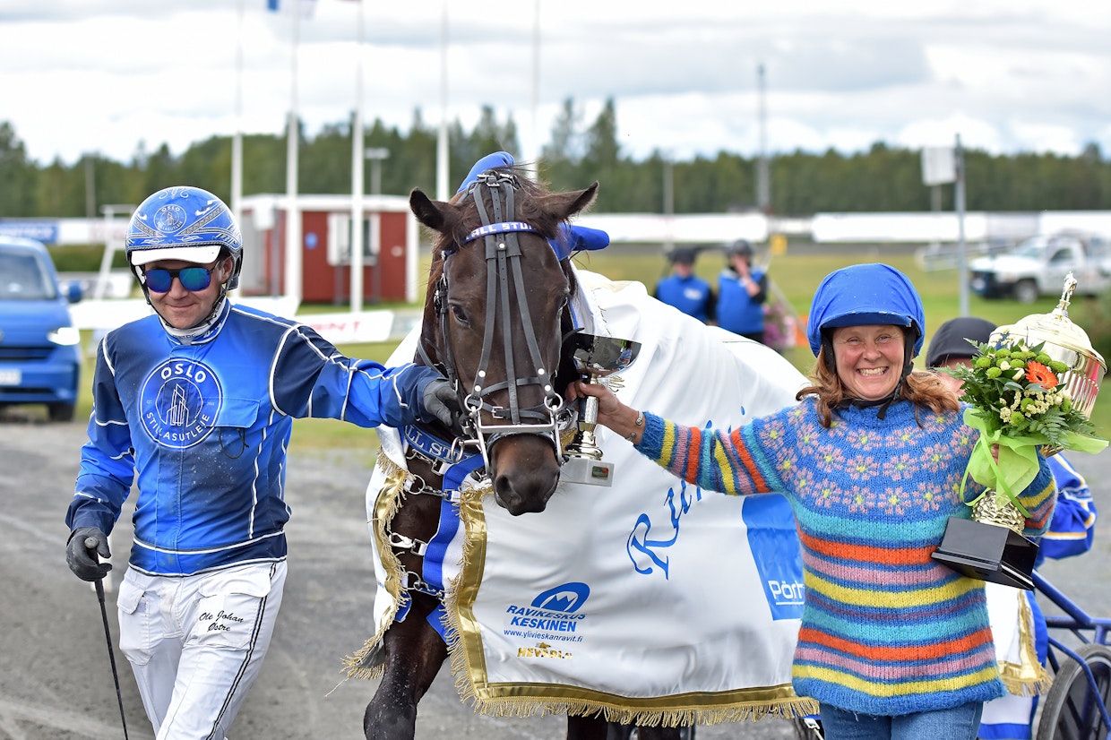 Norjalainen Stumne Fyr on voittanut kahtena viime vuonna Ruunaruhtinas-kilpailun. Ole Johan Östre ja Merete Viksås juhlimassa voittoa viime vuonna. Kuva: Mia Maki-MaunusTänä vuonna kisa ajetaan 15 000 euron ykköspalkinnolla 2600 metrin tasoitusajona.