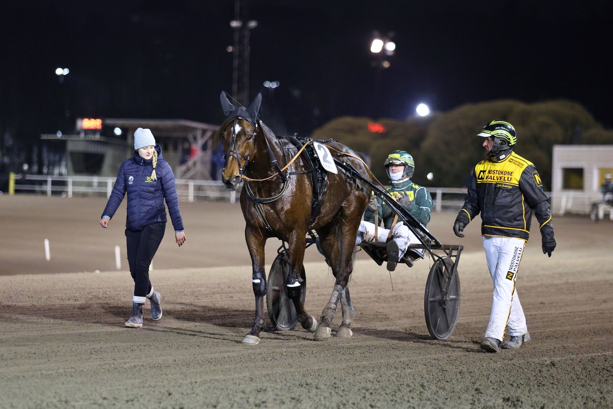 Massimo Hoist marssi voittajaesittelyyn tuttuun tapaan. Mukana hoitaja Veera Hakkarainen, ohjastaja Hannu Torvinen ja valmentaja Jukka Hakkarainen. Kuva: Kaisa StengårdSuomen ykkösravuri Massimo Hoist aloitti kilpailukautensa Vermossa tyylikkäällä voitolla. Hannu Torvinen ajoi oriin keulapaikalle, mistä Massimo Hoist sai vetää alkumatkan hölkkävauhteja.
