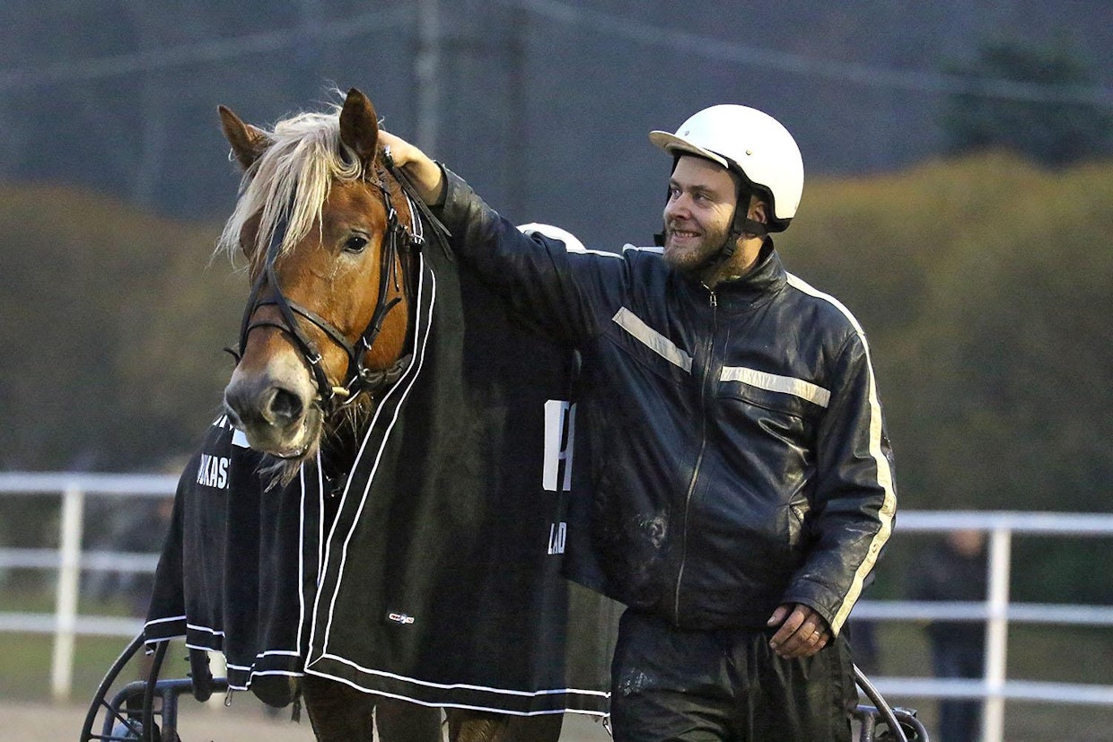 Voima-Simo ja Henri Tapala ovat tuttu parivaljakko läntisen Suomen raviradoilta. Kuva syksyltä 2022. Kuva: Kaisa StengårdHenri Tapalan Voima-Simo tavoittelee maanantai-iltana kotiradallaan Porista jo kauden kahdeksatta voittoaan.