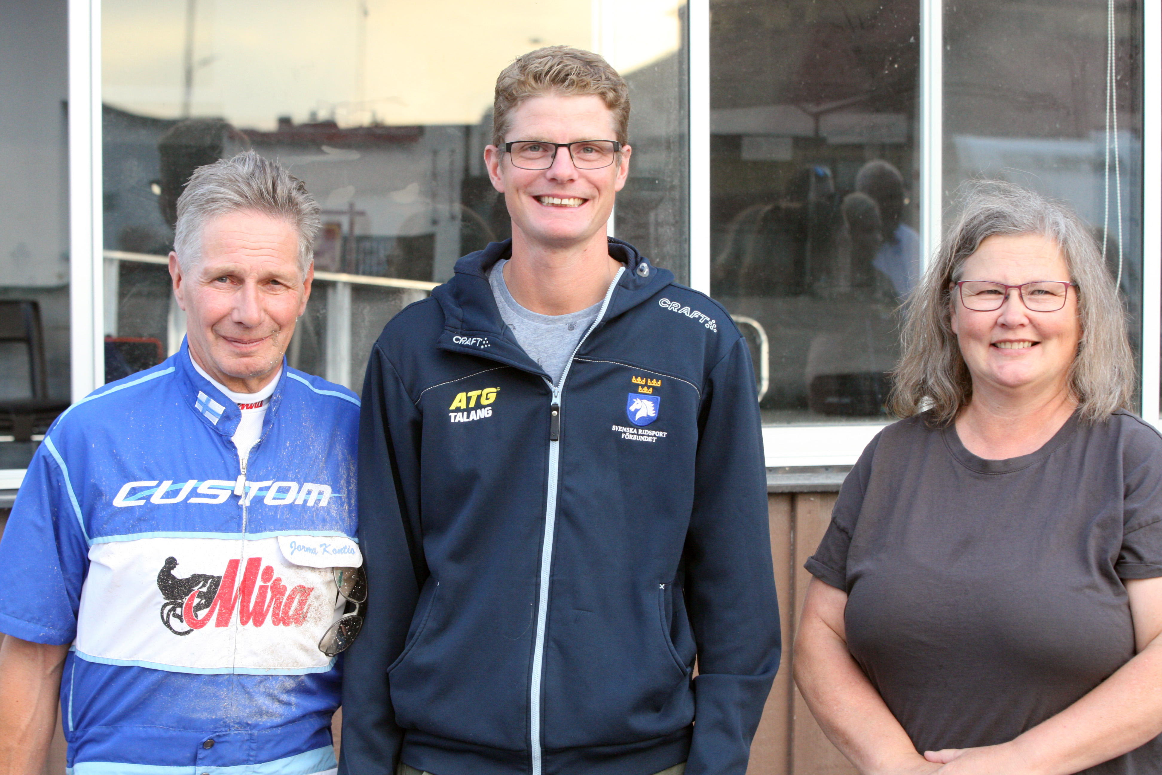 Jorma ja Päivi Kontio ratsastaja Joel Anderssonin kanssa. Torstaina pariskunnan Mijanou antaa näytteen päivän kunnostaan lounasraveissa. Kuva: Ville ToivonenSuomen ravittomaan torstaihin ollaan saatu tottua jo vuoden alusta lähtien. Ainoa poikkeus oli taannoisissa Oulun raveissa, jotka siirrettiin pakkasen takia torstaille.