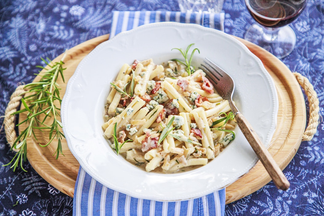Sinihomejuusto-pekonipasta on herkuttelijan unelmaruoka – valmistuu helposti