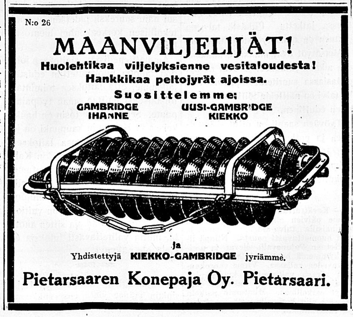 Peltojyrät kehotettiin MT:n sadan vuoden takaisessa mainoksessa ostamaan ajoissa. Kuva: KansallisarkistoSuomen konekirjoitusmestaruuskilpailuihin