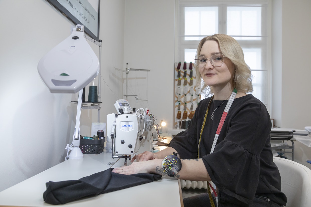 Yrittäjä Studio Milja Muhonen -ompelimossa vuodesta 2020 lähtien.