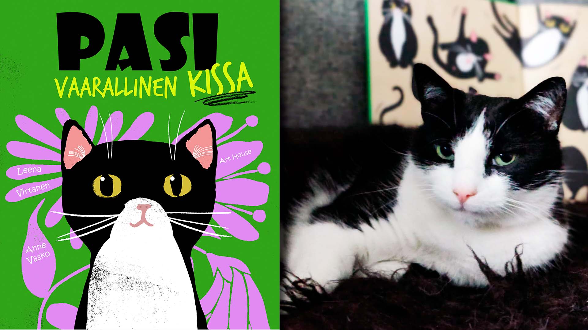 Hetken hämmennys muuttui nopeasti hilpeydeksi, kun pidin käsissäni Leena Virtasen kirjoittamaa ja Anne Vaskon kuvittamaa kirjaa Pasi, vaarallinen kissa. Samaan aikaan kotona minua odotti oikea kissa nimeltä Pasi, joka on aina ollut kaikkea muuta kuin vaarallinen.
