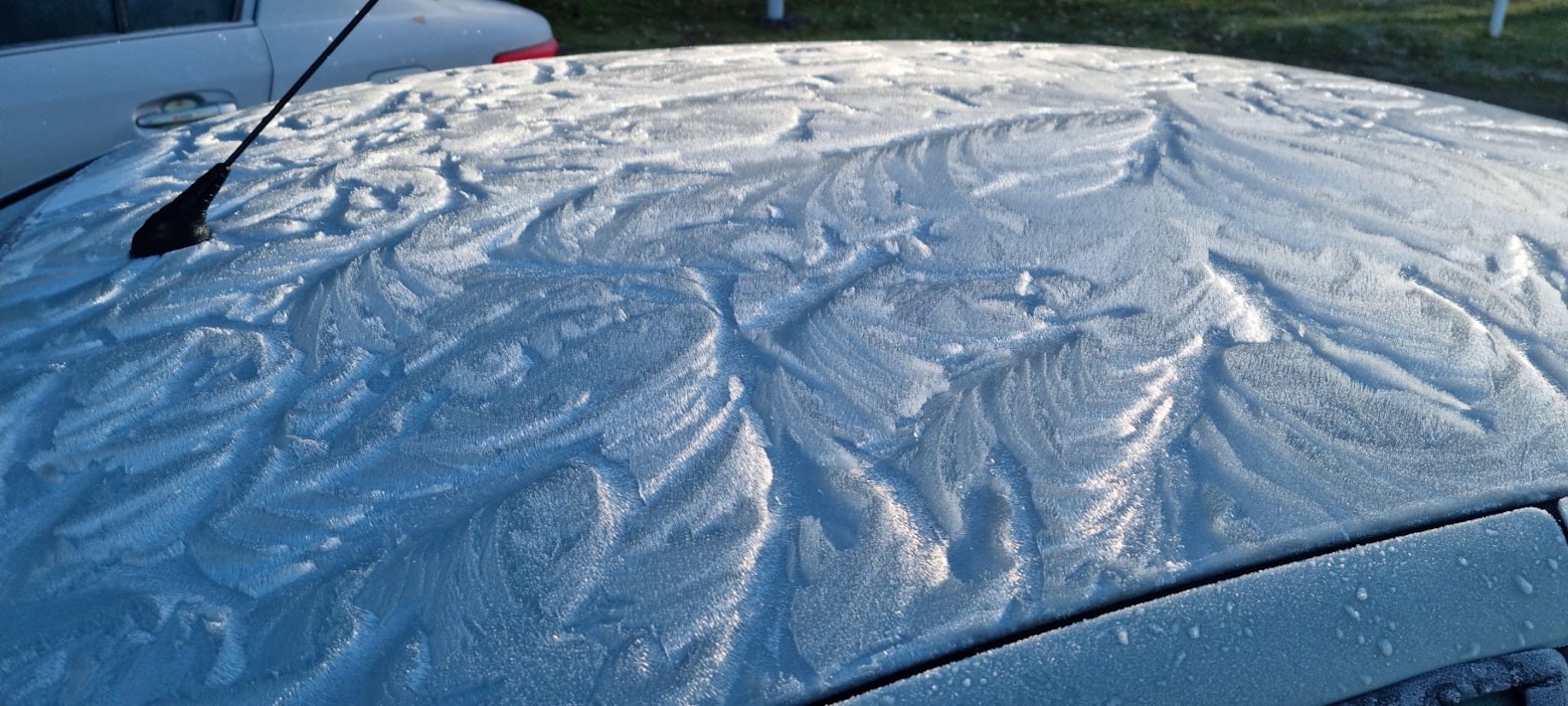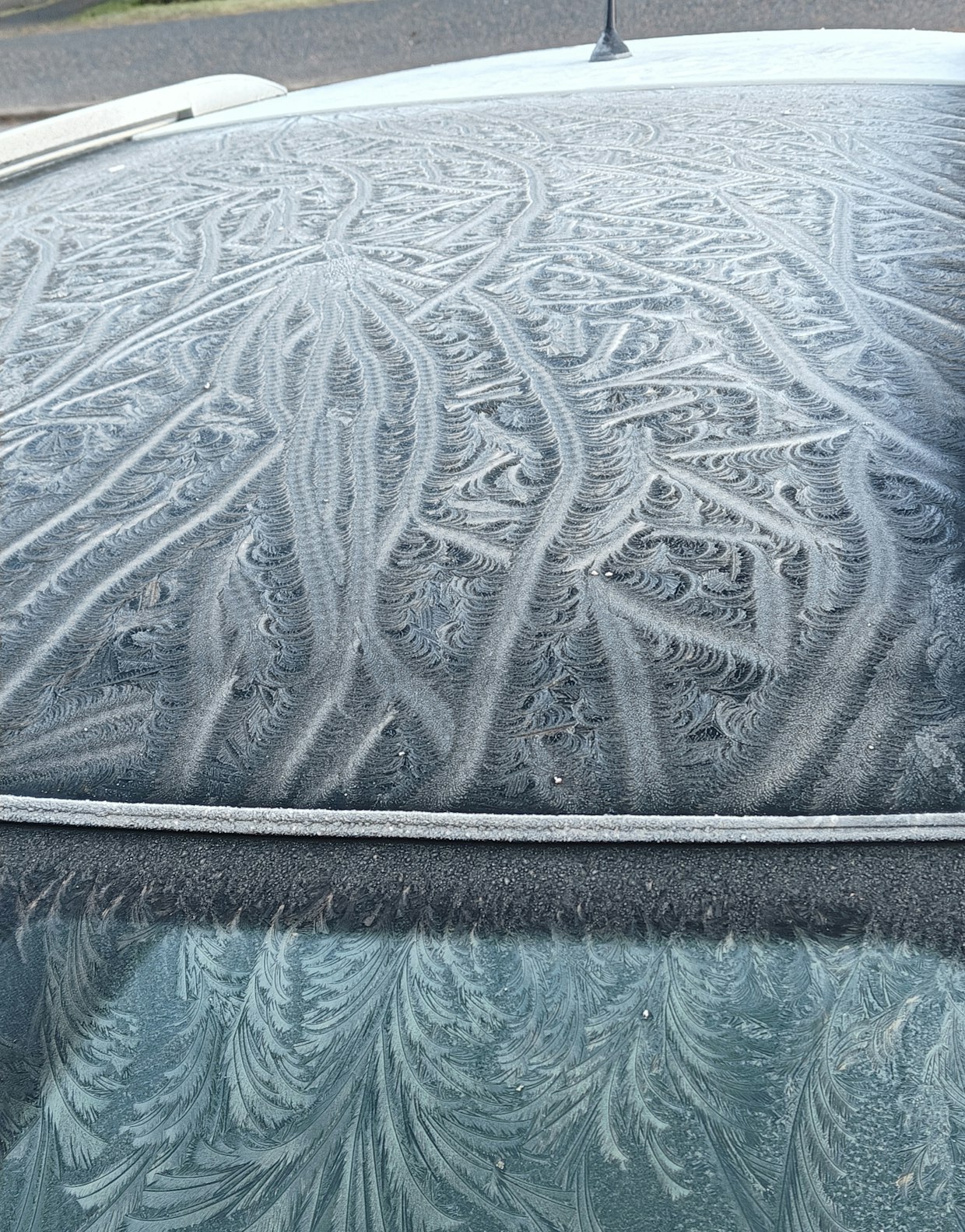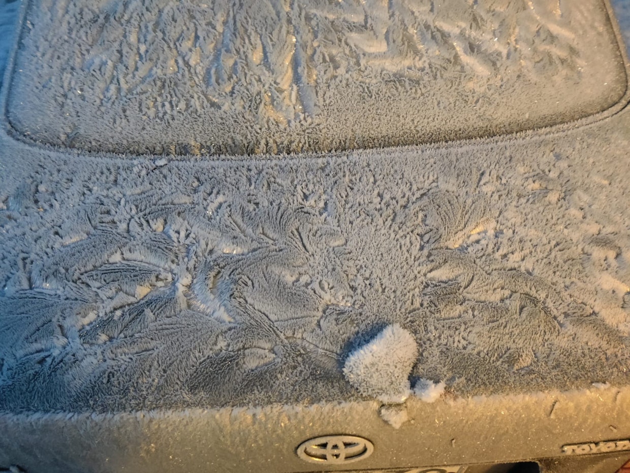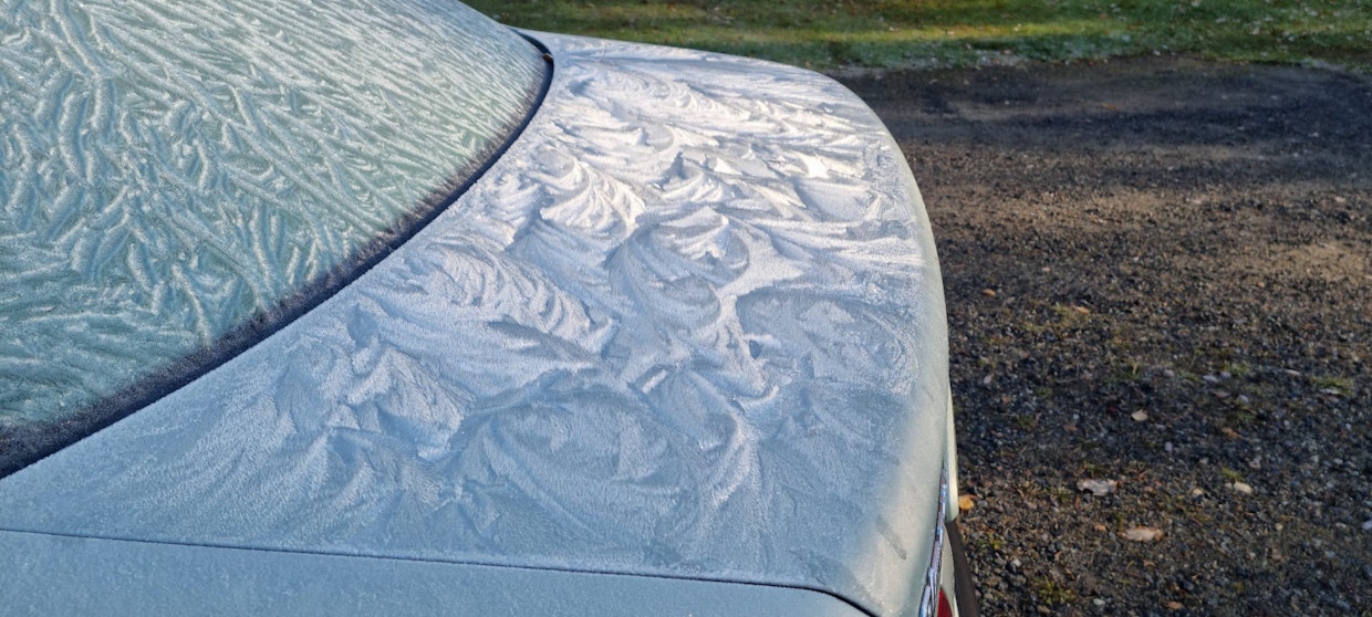 Aamuaurinko tuo kajoaan auton katolle.”Luontoäiti osaa olla taiteellinen”, Terttu Lautamäki Parkanon Vahojärveltä tuumaa. Kuva: Terttu Lautamäki