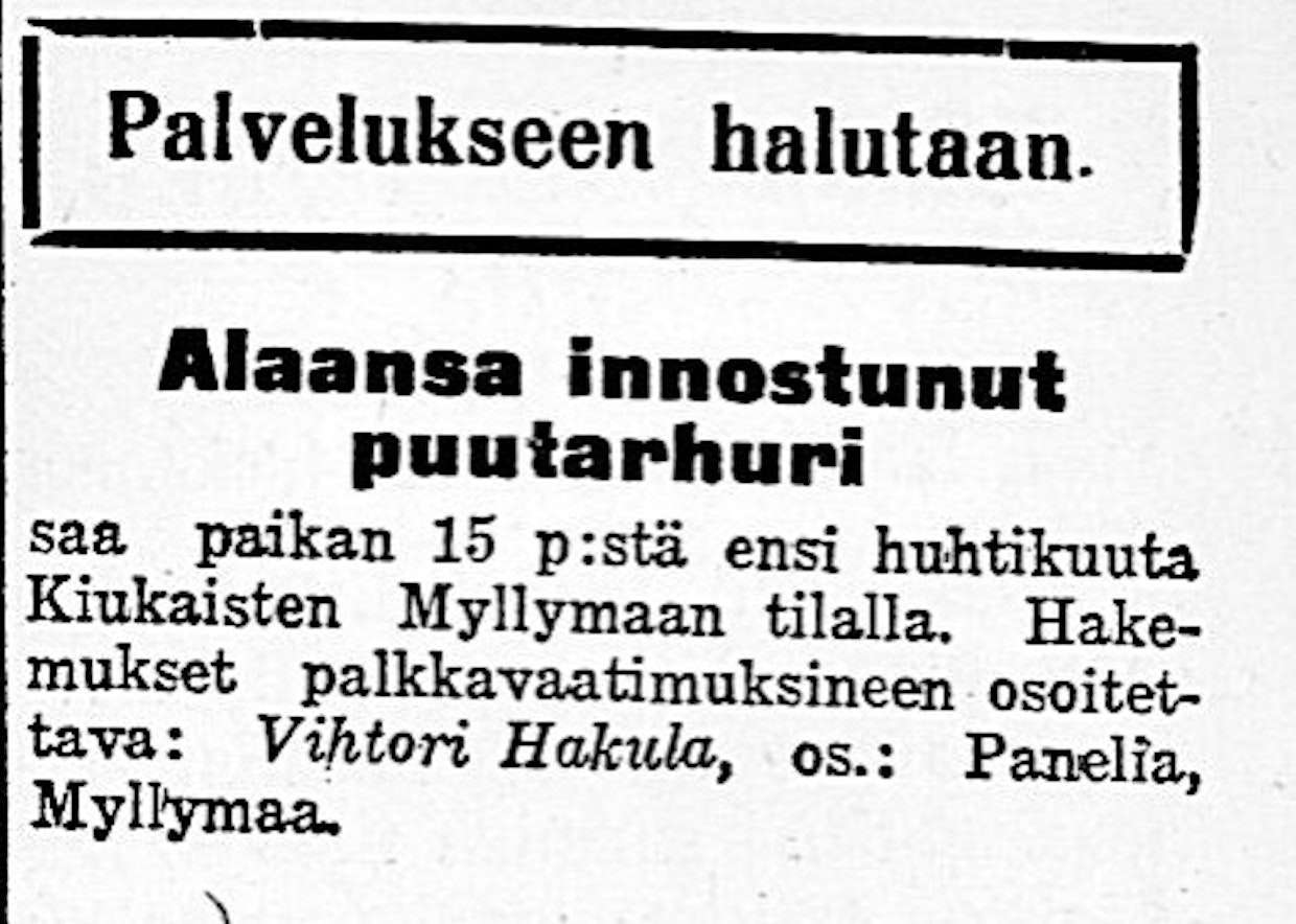 Viime heinäkuun alkupäivinä sai maisteri Osmo Aulamo verkolla Suomatkan lahden suulla olevan Nappulasaaren sivusta järvilohen, joka painoi 1 kg. 650 grammaa.