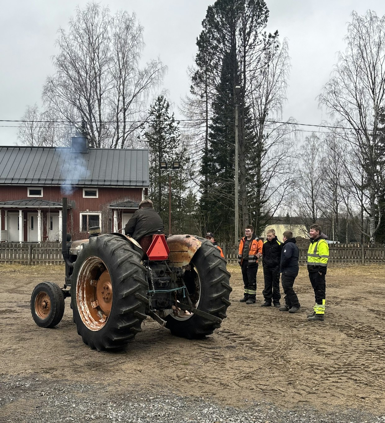 Ensimmäisen, kilometrin mittaisen koeajon pojat halusivat tehdä ennen pääsiäistä, vaikka traktorista puuttui vielä turvakaari.