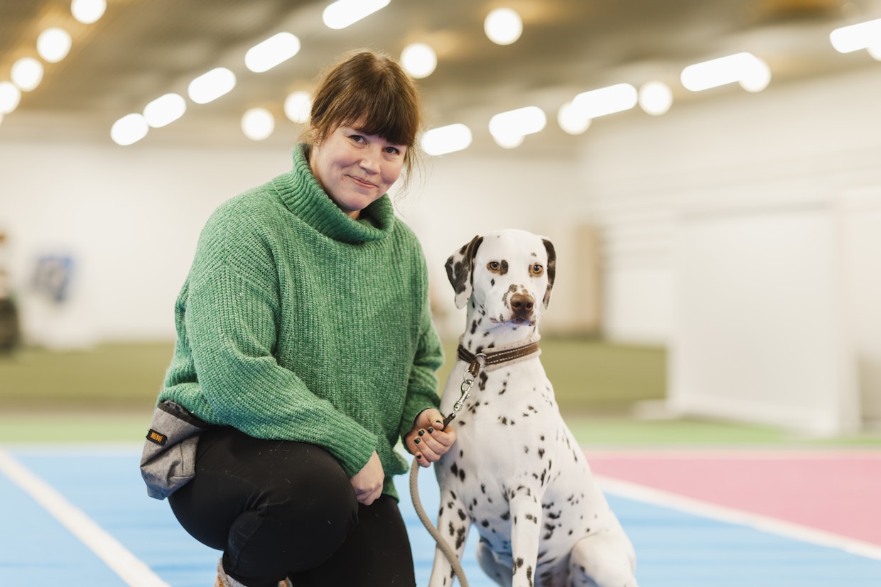Virpi Ketola ei muista koskaan saaneensa palautetta, että entiseen broilerhalliin tehty koirahalli olisi liian sivussa. Oivariini-dalmatialaisella on kotihallietu. Kuva: Taina RenkolaVirpi Ketola muistuttaa, että innokkaille koiraharrastajille ”puolen tunnin ajomatka” ei ole mitään. Hän ei muista saaneensa palautetta siitä, että hänen koirahallinsa olisi liian syrjässä.