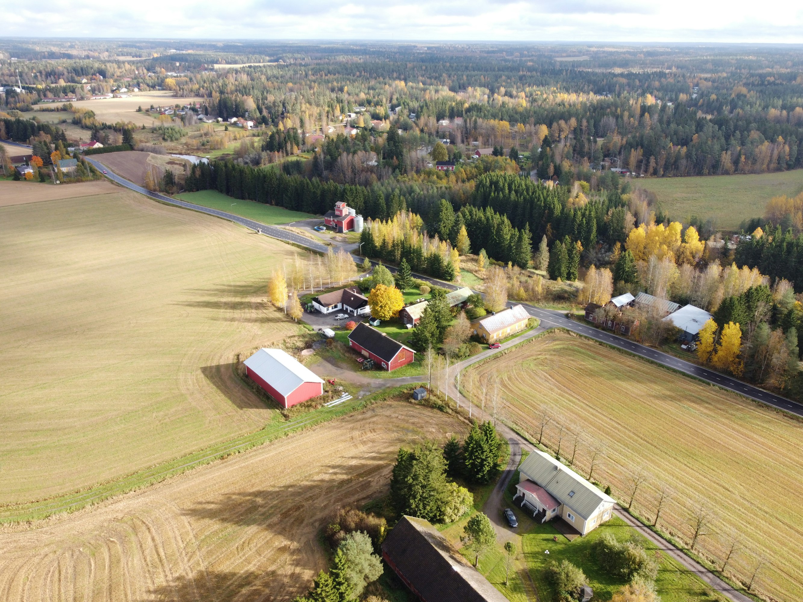 Aurajoen kupeessa seisovan Veräjänkorvan tilan pihapiiri lepää lokakuun hiljaisuudessa ja ruskan väreissä. Tilan keltainen päärakennus on seissyt paikallaan vuodesta 1889, ulkorakennus sitäkin pidempään.