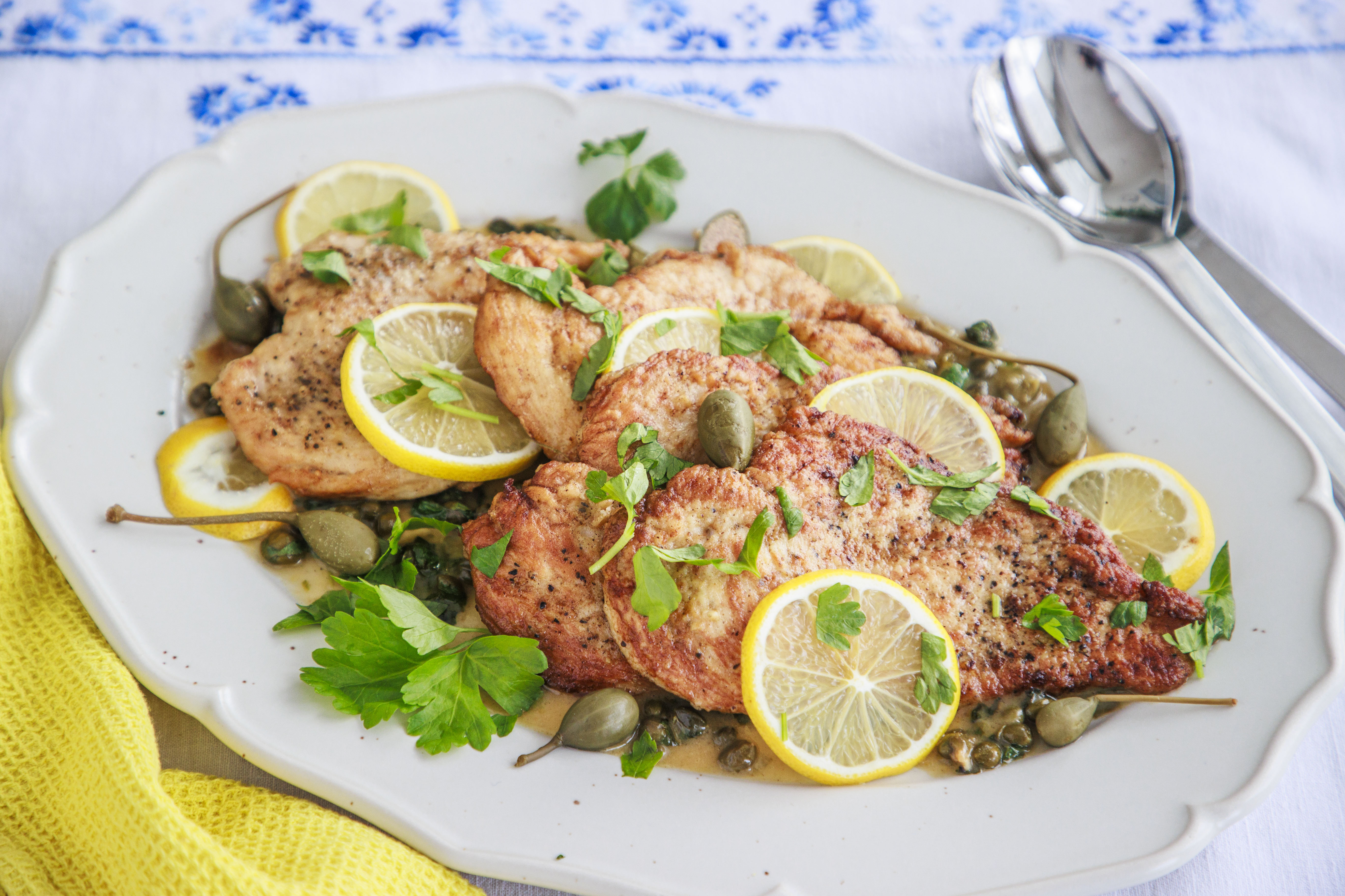 Aromaattiset kaprikset, kirpeät sitruunat ja raikas valkoviini tuovat kevyesti leivitettyihin perusbroileripihveihin sisilialaisen twistin. Ruoka on helppotekoinen ja sopii niin arkeen kuin juhlaan.