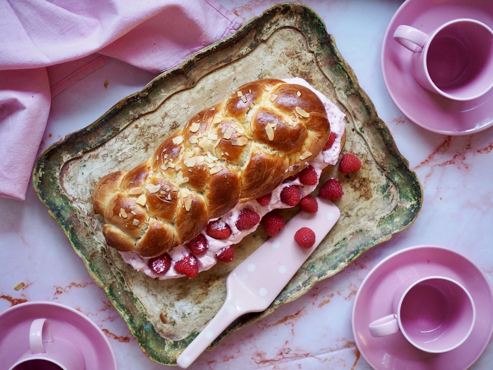 Neljällä säikeellä letitetystä pullapitkosta tulee herkullinen ja helposti syötävä laskiaispulla kun sen täyttää vaaleanpunaisella kermavaahdolla.Kolmen desin pullataikina