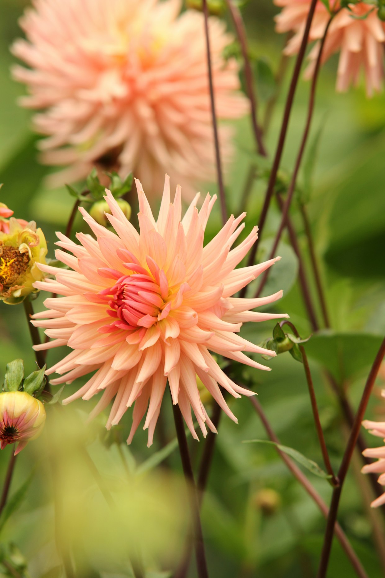 Kookkaat ja värikkäät kukinnot tekevät loppukesän daalioista (Dahlia) puutarhan keskipisteitä. Kuva: Säde Aarlahti