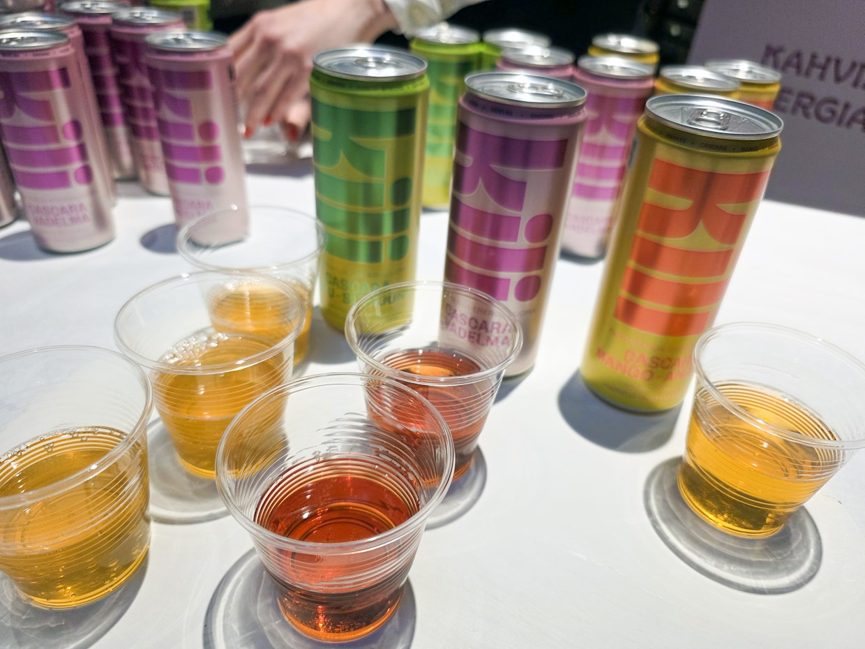 Shalaatin idea on se, että pohjalla oleva kastike sekoitetaan salaatin joukkoon ravistamalla. Kuva: Janiko KemppiKili-energiajuomista pääsin testaamaan kaikkia makuja eli cascara-yuzu-sitruunaa, cascara-mango-ananasta sekä cascara- vadelmaa. Kaikkia energiajuomia yhdisti se, että niistä puuttui monille energiajuomille ominainen energiajuoman maku. Juomat olivat raikkaita ja erottautuivat selkeästi toisistaan. Kofeiinia yhdessä tölkillisessä on 100 milligrammaa.