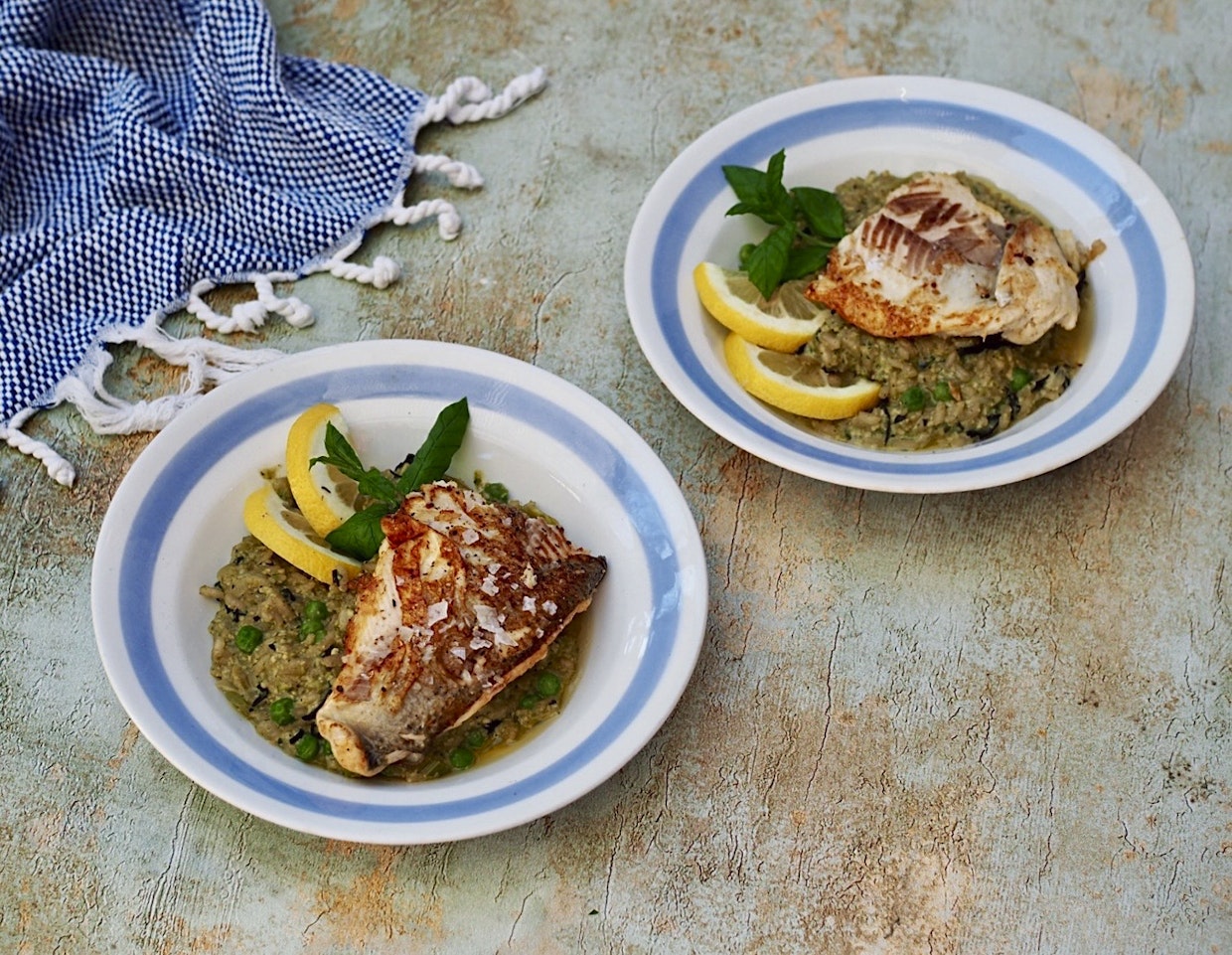 Kevään siika tarvitsee vain nopean paiston – ylikypsennys vie helposti kalan hienon rakenteen. Kuva: Tiina RantanenPaistettua siikaa ja hernerisottoa