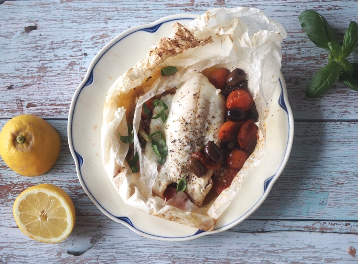 Leivinpaperipaketti pitää kalan mehevänä – sama tekniikka toimii yhtä hyvin myös tavallisessa uunissa. Kuva: Tiina RantanenAntiboisekuhaa airfryerissa