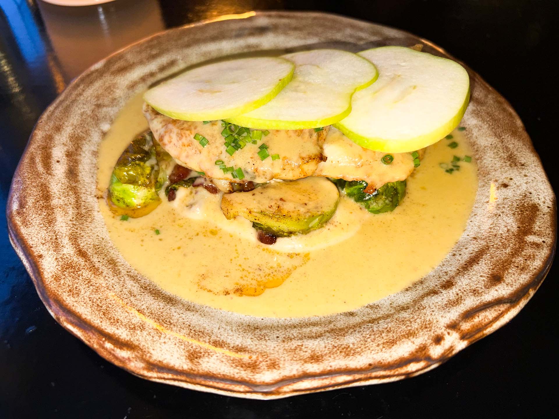 Pancetta-muruset paljastuivat italialaiseksi sianlihaksi, mitä en hoksannut tilatessa, mutta kaikkiruokaisena sekin upposi.