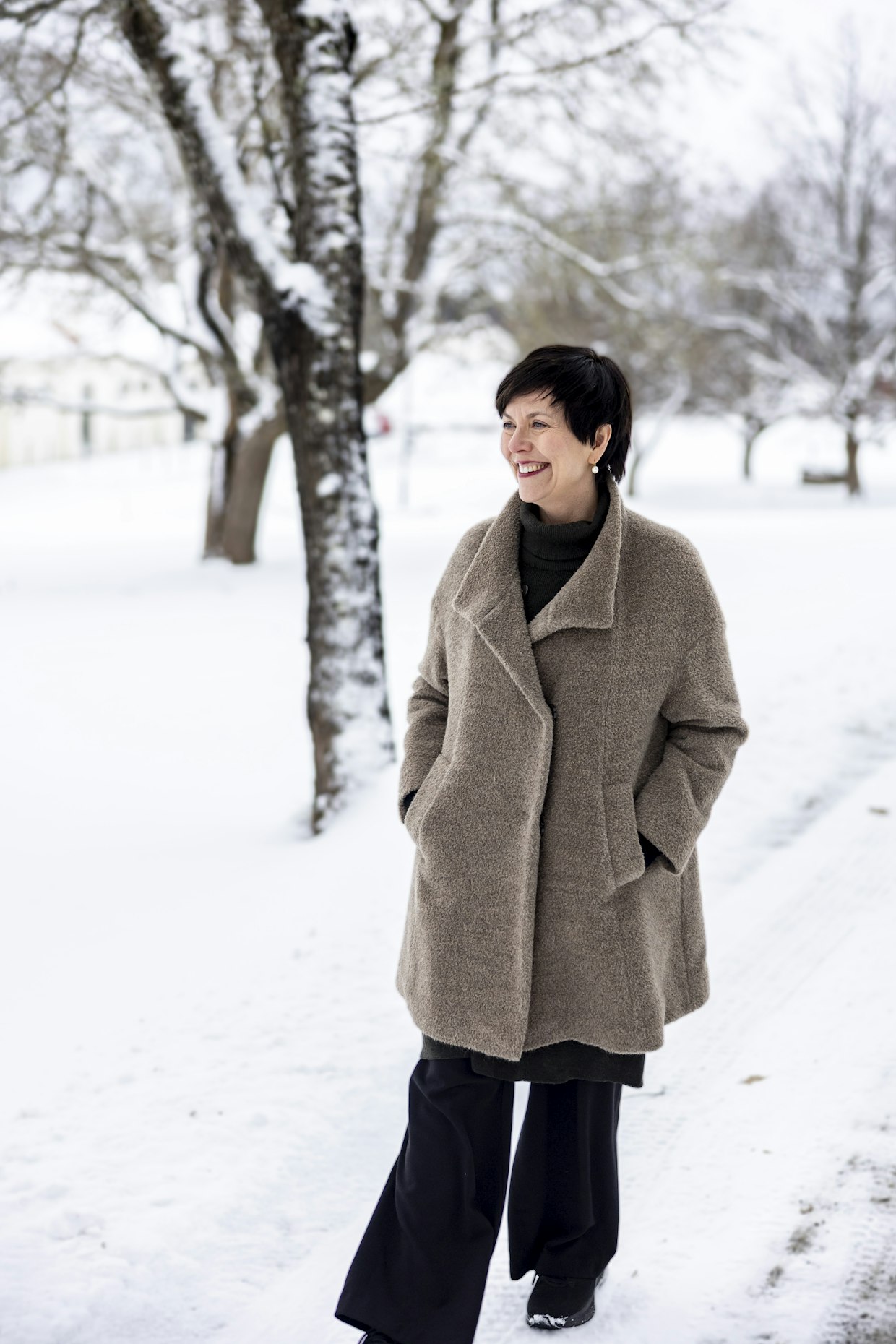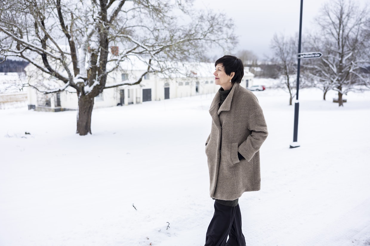 Laukon kartano Jussi Mäntysen hirvipatsaineen odottaa kesää. Liisa Lagerstamilla on kädet täynnä työtä myös talvella. Kuva: Rami MarjamäkiKun Liisa Lagerstam oli lapsi, Laukon kartanon ruohonleikkuu oli hänen Leena-äitinsä homma, mutta muuten puistossa ei oleiltu.