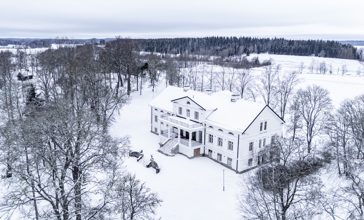 Omaa maata Laukon kartanolla on enää parikymmentä hehtaaria. Matkailun kannalta tärkein on kartanon puisto. Kuva: Rami MarjamäkiRavintolan takana hangessa näkyy rusakonjälkiä muttei yhtään peuranjälkeä. Lagerstam toteaa, että Vesilahden metsästysseurat ovat olleet tehokkaita.