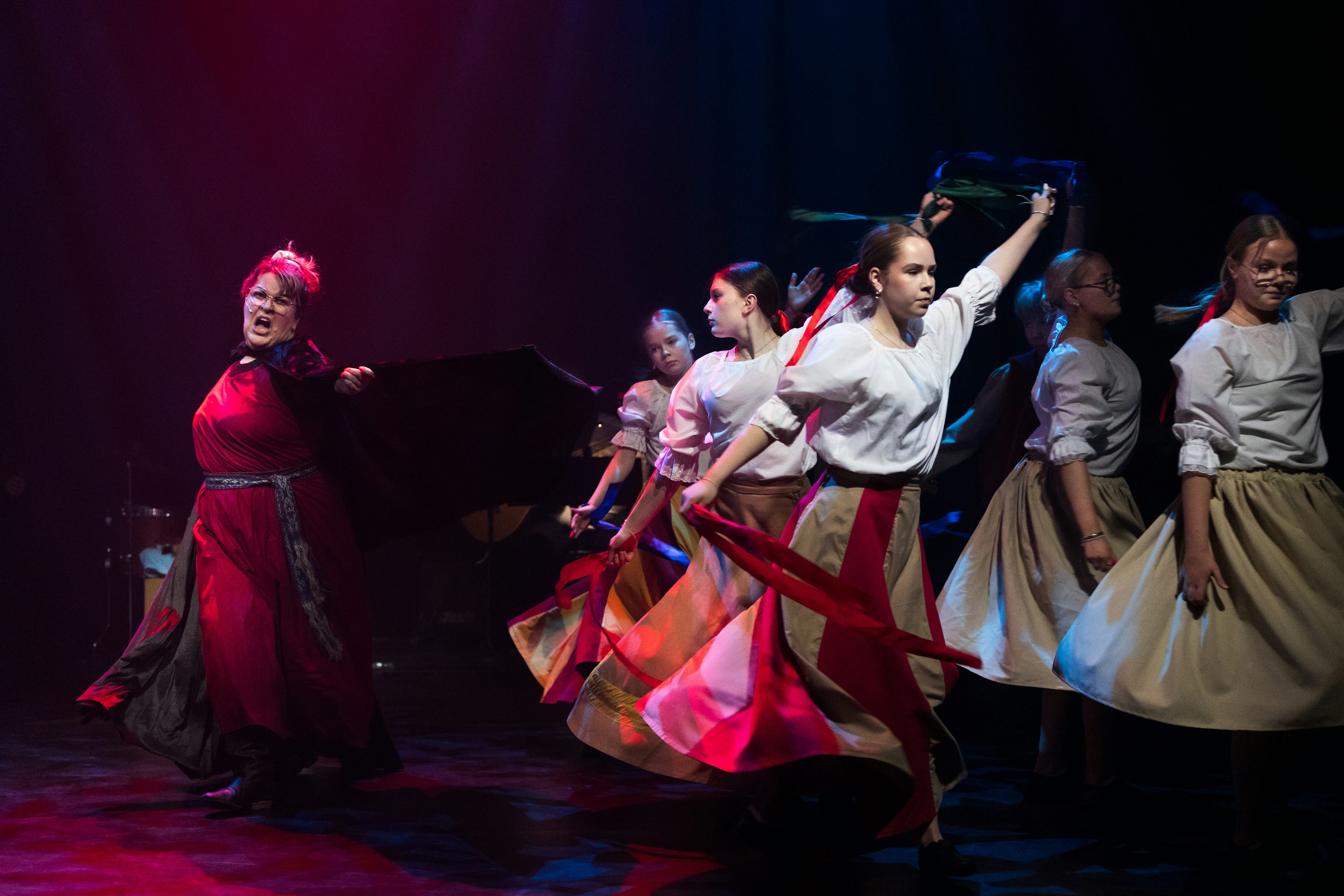 Viikon kuluttua harjoituksista nousevat Ripakat jo esiintymisasuissaan Joensuun kaupunginteatterin lavalle tanssimaan Eveliina ja Mitja Pilkkeen Kalevalaan pohjautuvaa kansantanssikoreografiaa Myrskyn tyttäret.