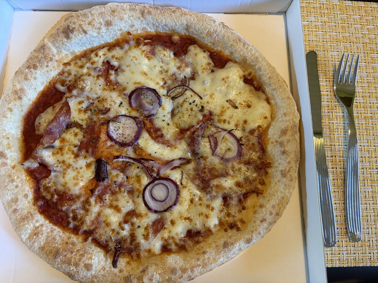 Äkkiä autoon ja kotiin syömään. Noin vartin ajomatkalla pizzat ehtivät jo jäähtyä melkoisesti.