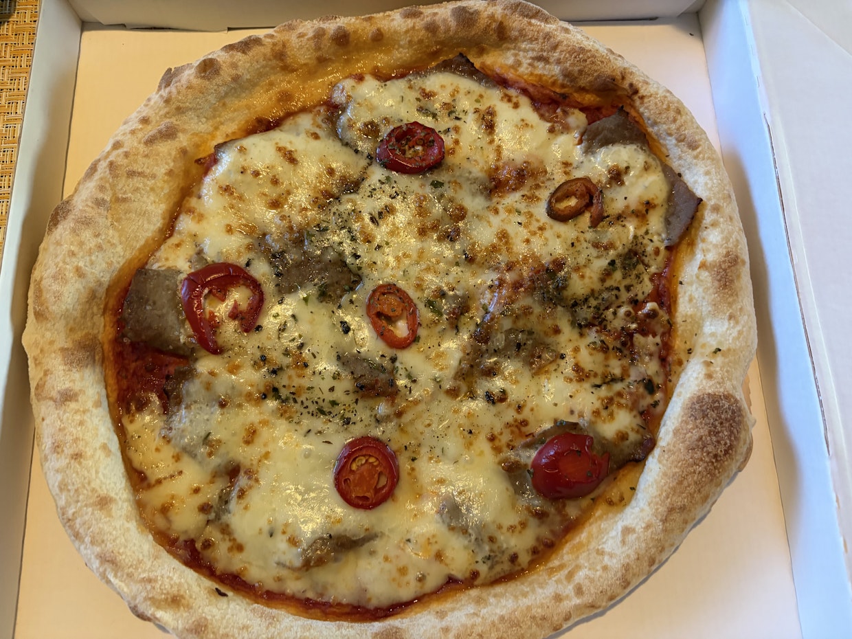 Kebab-pizzassani on tomaattikastikkeen ja mozzarellan lisäksi kebabia, kebab-kastiketta, ranch-kastiketta ja jokunen siivu jalapenoa. Kastikkeet tekevät siitä mehevän ja erittäin maistuvan. Virkistävää vaihtelua pelkälle tomaattikastikkeelle.