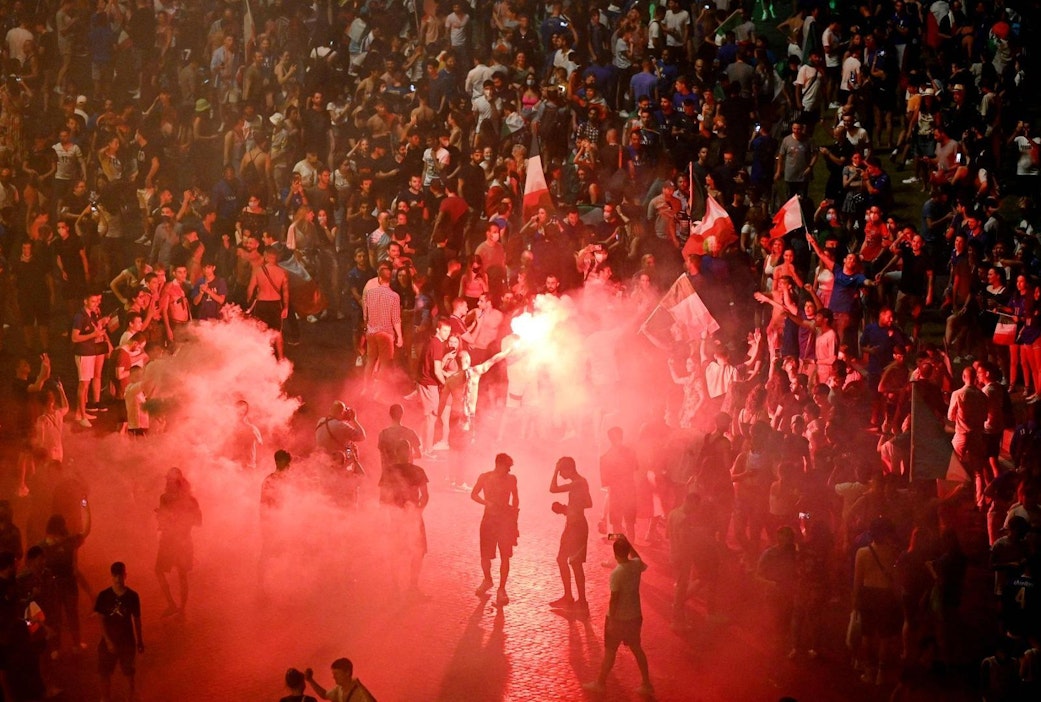 Corriere dello Sportin julkaisemissa kuvissa näkyy, kuinka italialaiset juhlivat voiton jälkeen kadulla punaisten hätäsoihtujen kajossa. Osa ihmisistä ilakoi kadulla ilman paitoja ja monet heiluttavat Italian punavalkovihreitä lippuja.