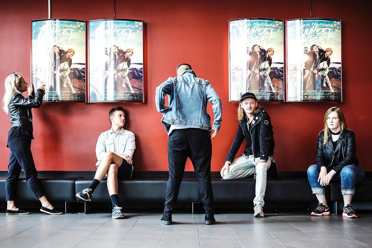 Lauri Mäntyvaaran tuuheet ripset -elokuvan näyttelijät Rosa Honkonen (vas.), Tiitus Rantala, Inka Haapamäki ja Santeri Helinheimo Mäntylä yhdessä ohjaaja Hannaleena Haurun kanssa Turun Kinopalatsissa. Kuva: Lari LievonenOnko se komedia? Vai rakkauselokuva? Tai ehkä sittenkin fantasiatoimintaseikkailu? Ensimmäisen pitkän elokuvansa Lauri Mäntyvaaraan tuuheet ripset ohjannut ja käsikirjoittanut Hannaleena Hauru ei välitä teoksensa lajityypin määrittelystä, kunhan sitä ei kutsuta nuorisoelokuvaksi.