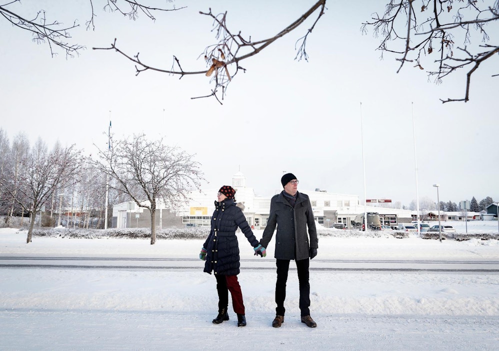 Jouni ja Janet Tervashonka kävivät 8. joulukuuta Joutsassa 20 asteen pakkasessa. Torilla oli hiljaista. Kuva: Petteri Kivimäki"Aloimme puhua aamukahvipöydässä, missä olemme käyneet. Aika monessa kunnassa on tullut käytyä. Heitettiin, että lähdetään käymään kaikissa", kertoo Janet Tervashonka.