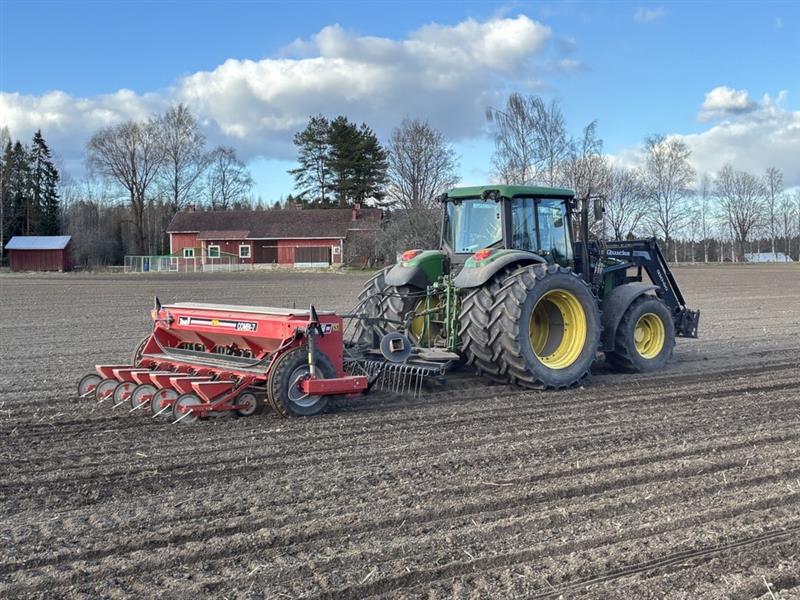 Toimittajan kokeilu alkoi: Jyräys ennen äestystä ja siemenet maahan lumisateessa