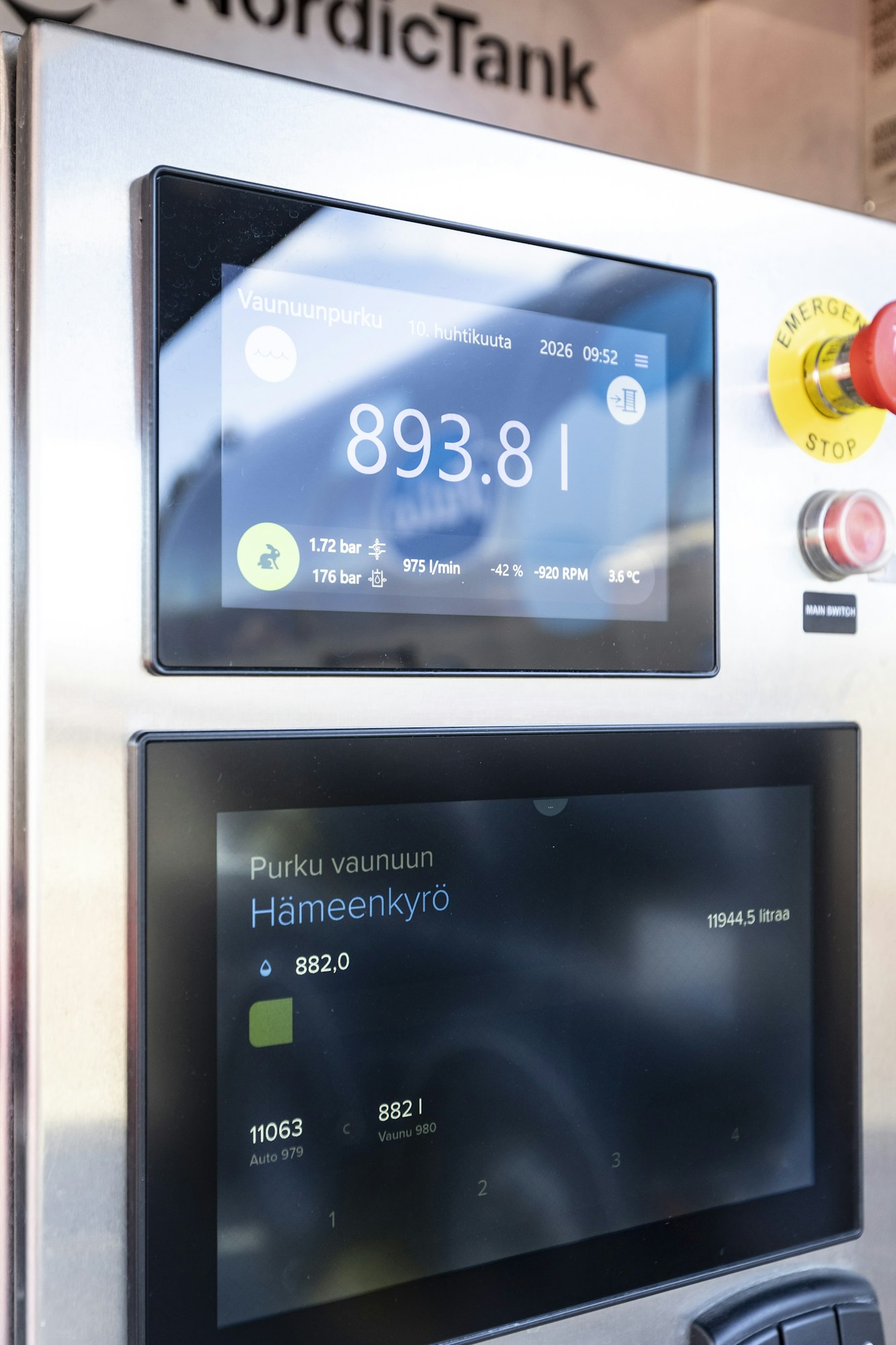 Koneet pumppaavat maitoa tilatankista auton säiliöön. Sinne mahtuu yhteensä 20 000 litraa.
