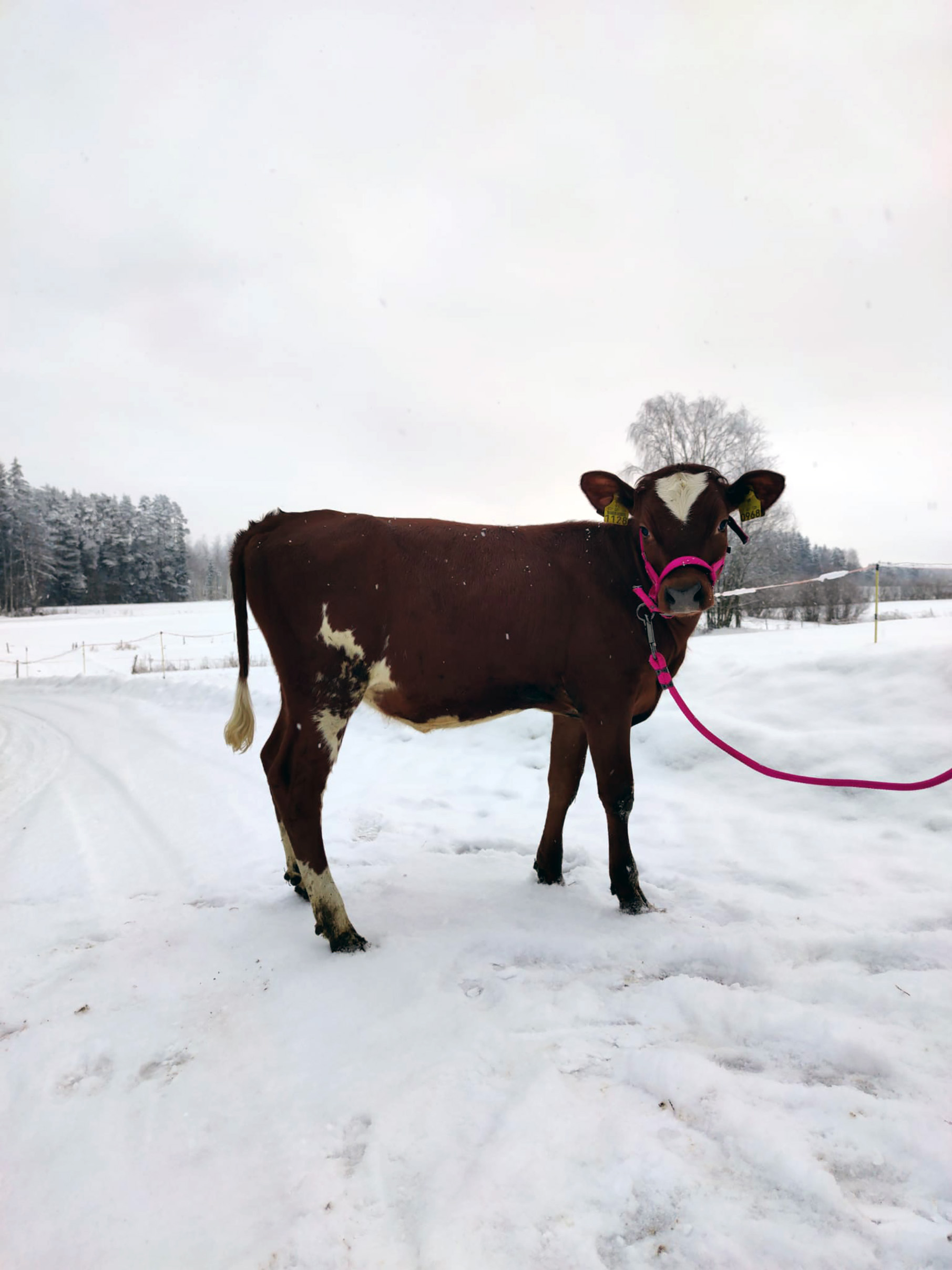 Auringonkukka on muuttanut Hollolaan ydinkarjatilalle. Pihatossa eläin saa seuraa muista huippuhiehoista.