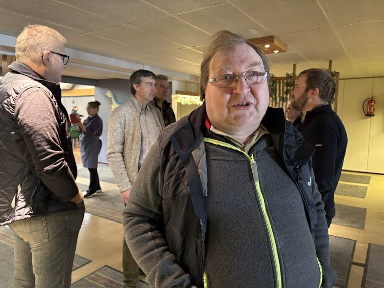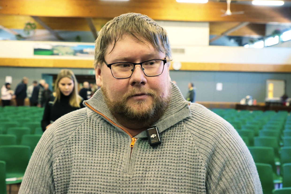 Kokoukseen saapunut Timo Laaksonen on huolissaan siitä, ettei kasvinviljelytiloille meinaa löytyä jatkajia ja ensimmäistä kertaa peltokaan ei meinaa käydä kaupaksi. Kuva: Heli LehteläKello 11.30: Väkeä virtaa saliin tasaista tahtia.