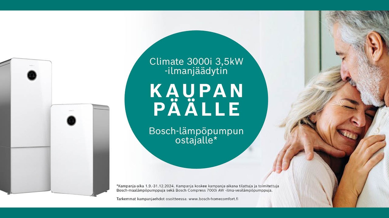 Lämmitysjärjestelmän valinnalla vaikutat siis suuresti asumiskuluihisi. Edullinen ratkaisu kodin lämmittämiseen on lämpöpumppu. Lämpöpumppu ottaa suuren osan lämmittämiseen käytettävästä energiasta omasta pihastasi – joko maasta taikka ilmasta, riippuen minkä lämpöpumpun valitset. Tekniikkansa ansiosta lämpöpumppu on myös kestävä ratkaisu, kun lämmitykseen käytetään pääosin uusiutuvaa energiaa.Lämpöpumpputekniikkaa voidaan hyödyntää myös edulliseen kodin viilentämiseen, jotta kotonasi on ympäri vuoden mukava ja edullinen sisäilma. Valitse kotiisi parhaiten sopiva lämpöpumppu – nyt kampanjassa Boschilta kaupan päälle ilmanjäähdytin. Lue lisää lämpöpumpun valinnasta alta tai tutustu kampanjaan ja kampanjaehtoihin!