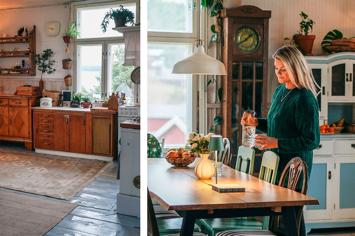 Anniina Jalkasen perheen kodissa matot eivät ole vain esteettisiä elementtejä, vaan helpottavat arkea myös käytännön syistä: ”Talvisin meillä on talossa kylmät lattiat, joten Rustasta hankitut villamatot tekevät asumisesta paljon mukavampaa”, Jalkanen kommentoi.Vaikuttajana työskentelevä Anniina Jalkanen asuu perheensä ja lemmikkiensä kanssa vanhassa hirsitalossa Turun saaristossa. Kodin sisustuksessa yhdistyvät lämpimät sävyt, luonnonmateriaalit ja hallittu, mutta runsas tyyli, joka henkii kodikkuutta ja elettyä elämää. Vanhan kalastajatilan tunnelma ja historia näkyvät jokaisessa yksityiskohdassa, ja sisustus on muovautunut puolen vuoden aikana perheen mieltymysten mukaan.