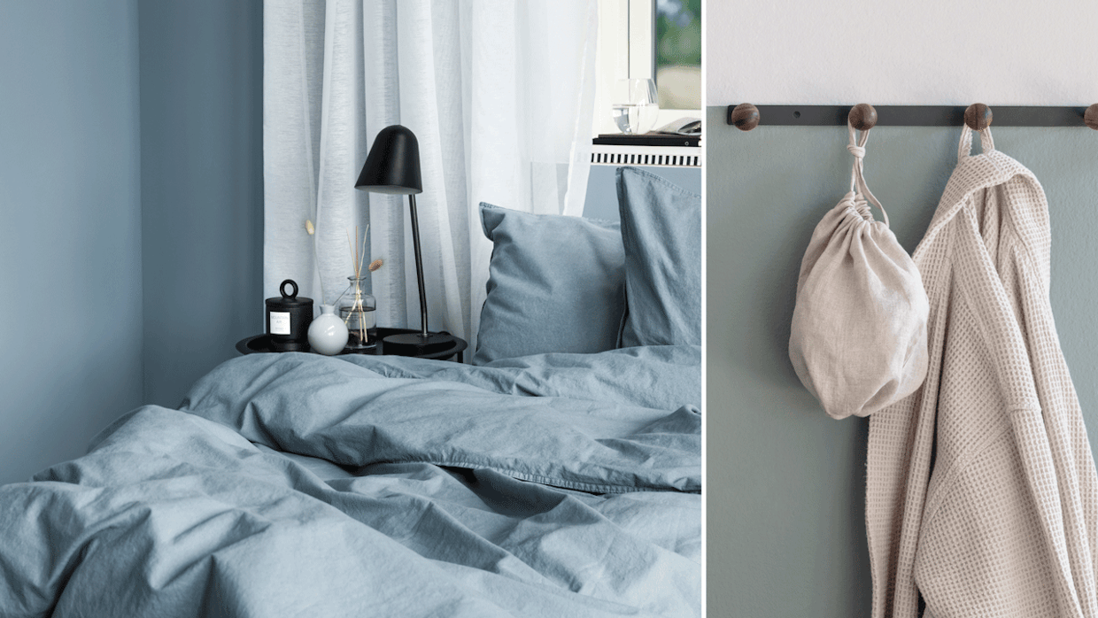 Tee akustiikkapaneelista sängynpääty päivässä. Lisää pehmeät tekstiilit, pimentävät verhot ja lempeä valaistus, niin saat makuuhuoneen, jossa on vähintään yhtä viihtyisä tunnelma kuin hotellissa. Rustan sisustussuunnittelija Andrea Jörbrink antaa parhaat vinkit.1. Valitse rauhallinen värimaailma