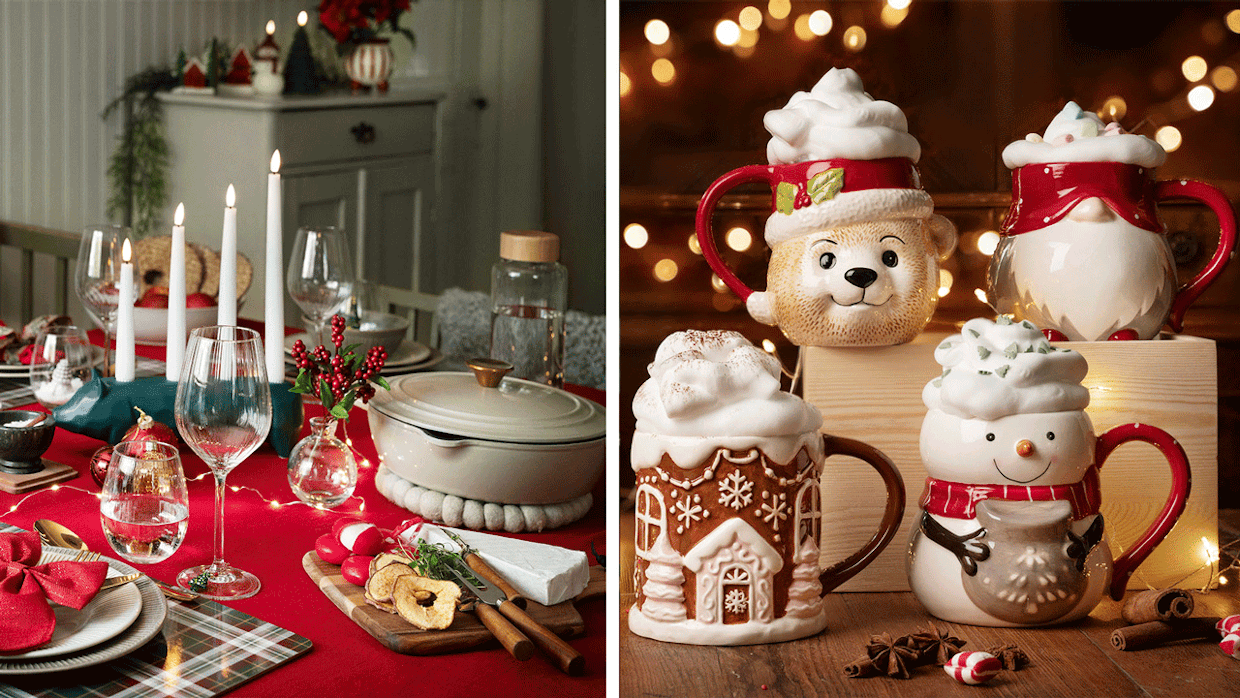 Tee viikonloppuaamuista erityisiä tarjoamalla kuumaa kaakaota kauniista joulumukeista, tai tarjoile iltapalavoileivät suloiselta tarjottimelta.