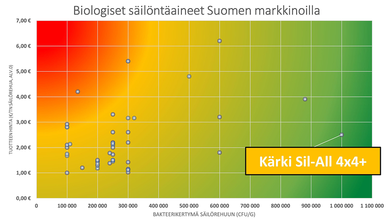 Biologisten säilöntäaineiden suosion kasvu on ollut nopeaa ja muuttanut pysyvästi tapaamme tehdä säilörehua myös Suomessa. Alussa tuotteiden halvempi hinta synnytti suuren osan kysynnästä, mutta tänä päivänä sisältö ratkaisee. Säilörehua ei tehdä kevein perustein, vaan sen laatu määrittää koko vuoden tuloksen. Lue siis pidemmälle, saatat oppia jotain, jolla nostat tilasi säilörehun laatua sekä tuotannon kannattavuutta pysyvästi paremmaksi!Säilöntäainevalinta on käsillä nyt