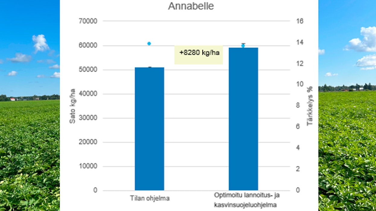 Perunalle +8280 Kg/ha sadonlisä lannoituksen ja kasvinsuojelun optimoinnilla