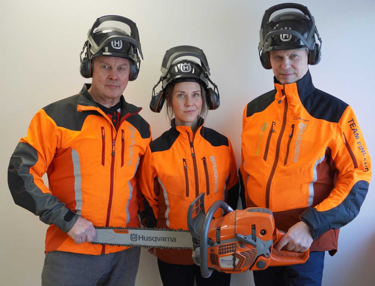 Suomen joukkueen jäsenet Pentti Paananen (vas.), Janniina Hämäläinen (kesk.) ja Jarmo Laatikainen. Joukkueeseen kuuluu myös Suomen mestari Jukka Perämäki. Kuva: Oy Husqvarna AbOsallistujat suorittavat kilpailupäivien aikana viisi tehtävää. Taitoa mitataan tarkkuuskaadossa, karsinnassa, teräketjun vaihdossa, alta–päältä -sahauksessa sekä tarkkuuskatkaisutehtävässä. Tehtävistä saadut kokonaispisteet ratkaisevat maailmanmestaruuden.