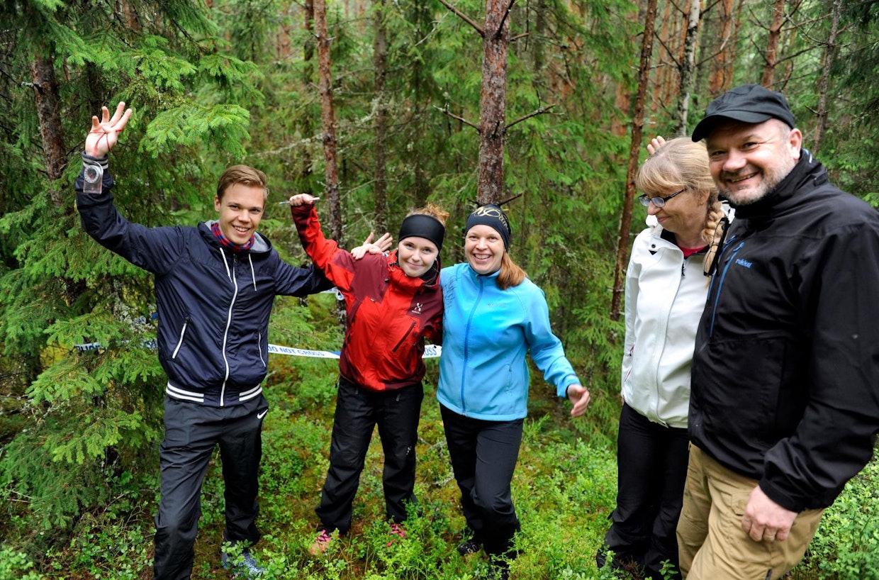Metsäistä mysteeriä olivat selvittämässä Joona Jäntti (vas.), Hanna-Liisi Heinola, Hanna Jäntti sekä Riika ja Teijo Niininen. Kuva: Johannes Wiehn