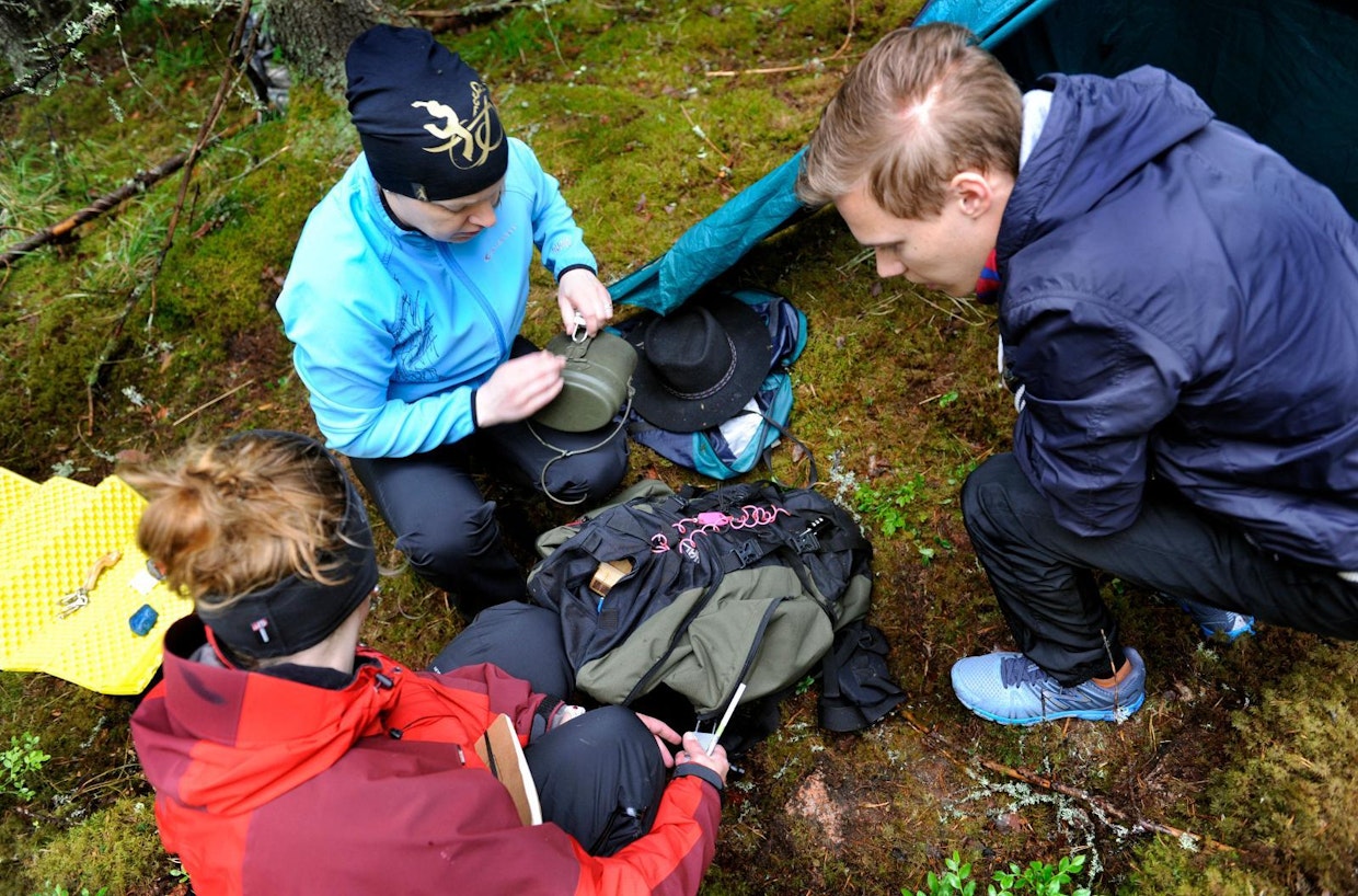 Tervarummun suunnittelemassa Sekaisin Skutsissa -metsäpakopelissä ryhmällä on tunti aikaa selvittää, mitä on tapahtunut. On löydettävä vihjeitä ja ratkottava tehtäviä. Kuva: Johannes Wiehn