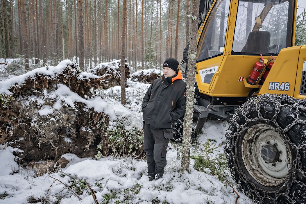 Metsänomistaja Daniel Björkenheim korjaa osan myrskytuhoista kartanon pienellä metsäkoneella. Muun korjuutyön tekee puut ostaneen metsäyhtiön korjuuyrittäjä omalla kalustollaan.TilaajalleArtikkelin aiheet Metsäpalvelu