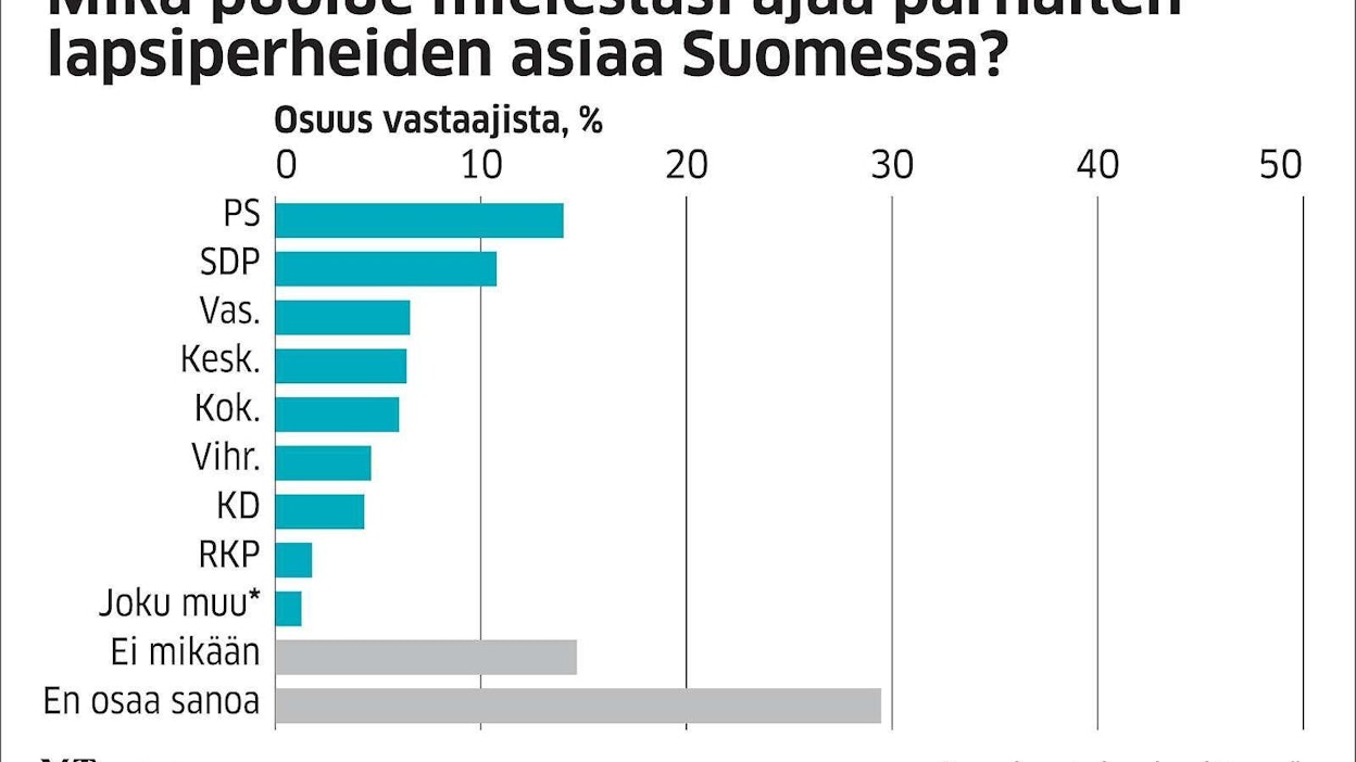 MT:n kysely: Suomalaisten mielestä perussuomalaiset ajaa lapsiperheiden asiaa parhaiten sekä maaseudulla että kaupungissa