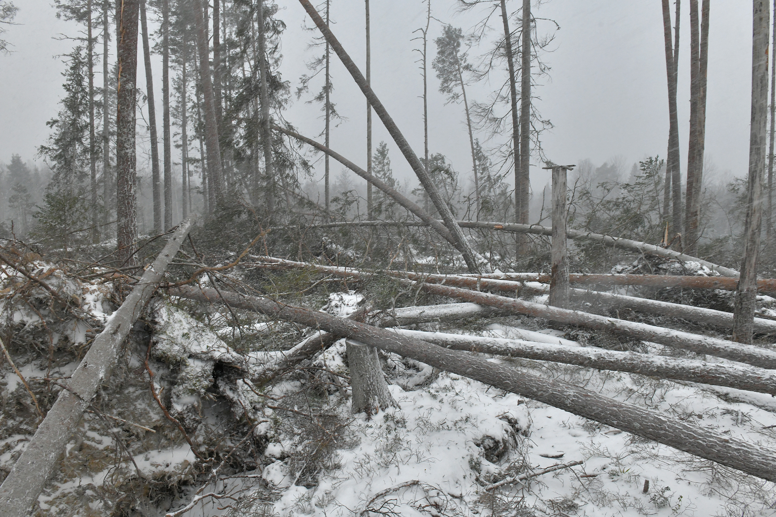 Joulukuinen Hannes myrsky kaatoi metsää läntisessä Suomessa. Vakuutuskorvausten määrässä myrskytuho nousee kolmen suurimman joukkoon tällä vuosituhannella. Kuva: Juha SinisaloVuosituloksensa julkistanut Lähi-Tapiola-ryhmä maksoi viime vuonna vahinkovakuutuksista korvauksia 1 015 miljoonaa euroa.