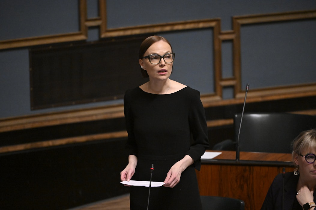 Vasemmistoliitto on saavuttanut Minja Koskelan (kuvassa) puheenjohtamana ennätyksellisen kannatuksen viimeisen 15 vuoden aikana. LEHTIKUVA / Mikko Stig.SDP jatkaa edelleen suosituimpana puolueena, käy ilmi Helsingin Sanomien kannatusmittauksesta.